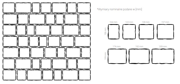 System składa się z 7 elementów w kształcie prostokątów i kwadratów, co pozwala tworzyć harmonijne, a jednocześnie dynamiczne kompozycje. Atena Retro doskonale wpisuje się w styl tradycyjny, rustykalny oraz nowoczesne aranżacje z nutą vintage. Bogata paleta kolorystyczna umożliwia idealne dopasowanie nawierzchni do elewacji budynku i otoczenia.