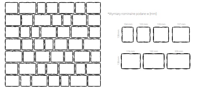 Atena to kostka o prostych klasycznych kształtach i atrakcyjnej kolorystyce. Pozwala na kreowanie ciekawych mozaikowych powierzchni. Doskonale harmonizuje z innymi wzorami kostek serii Feeria Color tworząc ciekawe, urozmaicone kompozycje kolorystyczne. System składa się z siedmiu elementów.